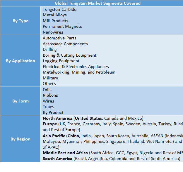 Ans: Global Tungsten Market growth is driven by rising demand across aerospace, automotive, mining, and electronics sectors, along with adoption of tungsten carbide tools, high-performance alloys, and tungsten powder.